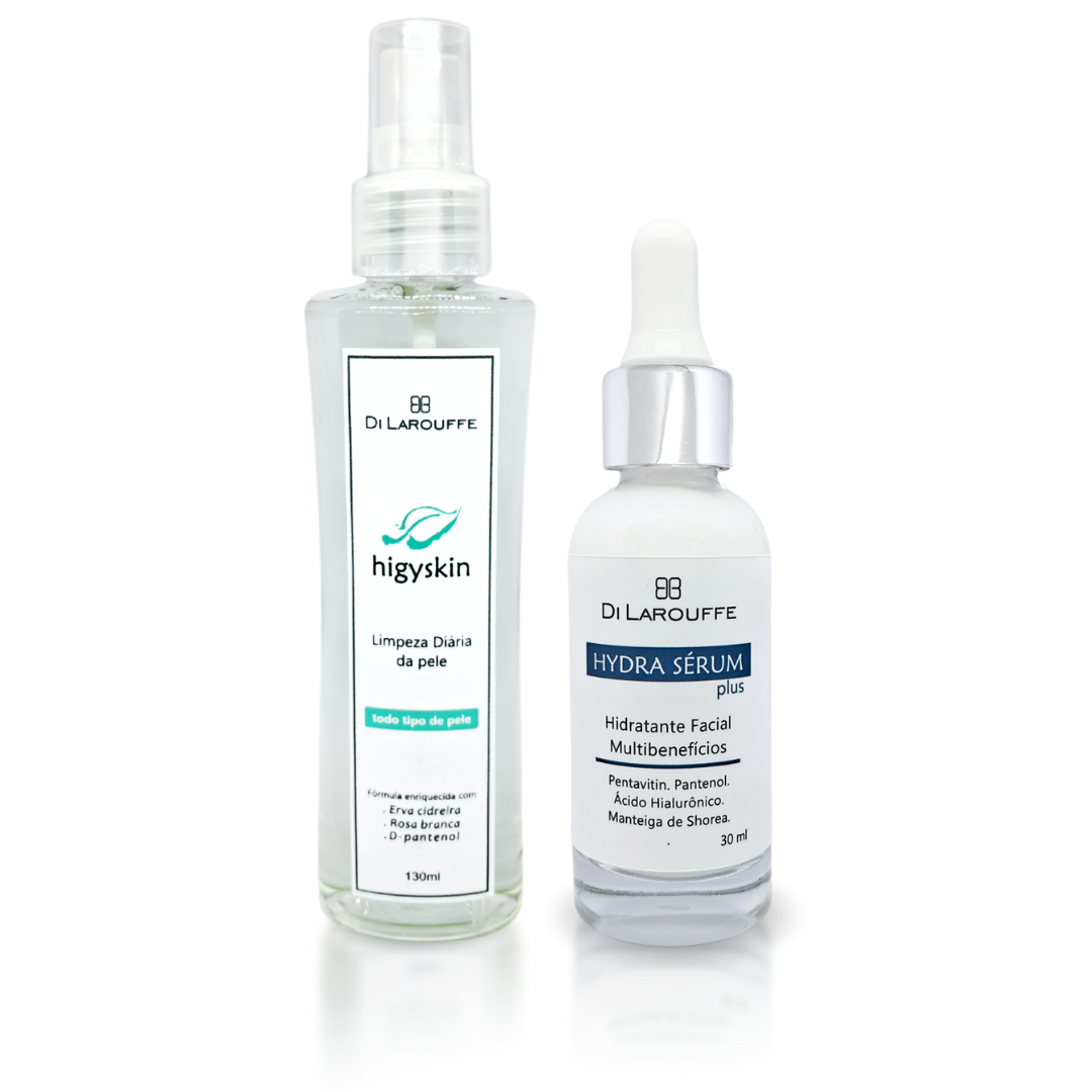 Rotina em 2 Passos: 1) Limpeza com Higyskin e 2) Hidratação e tratamento com Hydra Sérum Plus